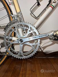 Montata con Gruppo Campagnolo Super Record completo anche di pedali pantografato Gianni Motta su tubo sella e guarnitura.