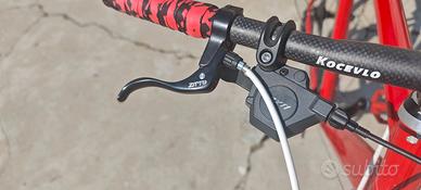 La bici è perfetta riverniciata rosso Alfa e revisionata in ogni suo singolo componente meccanico, leggerissima e scorrevole, l'avevo progettata per usarla in città ma poi mi sono trasferito fuori e preferisco il manubrio con la piega.