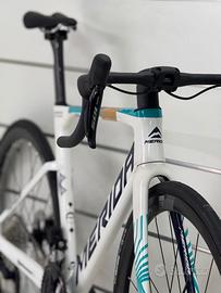 La bici è allestita con gruppo Shimano 105 di2 12v e ruote Vision Team 35