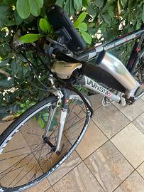 bici da corsa; manubrio ibrido; 2 porta borracce; 1 pompa