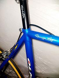 Bici da corsa OLMO, acquistata da Olmo il maestro Adelio nel 2005, regalo a una st. e usata una sola volta , la bici e' immacolata sempre tenuta in ufficio , telaio dedra acciao crom da centro a centro 57, cambio Campagnolo Mirage 9 velocità, pedali attacco Look, Firmata sul telaio Giuseppe Olmo. Ribadisco e' nuova .