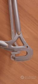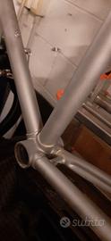 vendo come da foto per progetto single speed o ripristino, telaio con forcellini gipiemme e serie sterzo ofmega.Il telaio é stato sabbiato ed è pronto per essere verniciato, é in ottime condizioni, non ha ruggine ma solo un piccolo segno che si vede in foto sul tubo centrale nella parte bassa a sinistra; da centro a centro misura cm 51, quindi adatto a persone di media statura.