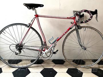 bici da corsa Mino Denti, vintage 1994, modello mirages, gruppo shimano 105, tubolari nuovi, leve del cambio modificate al manubrio