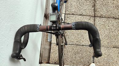2005, tg 56, telaio alluminio profilato, tubi Columbus , forcella e carro posteriore in carbonio, ruote Mavic alluminio baso profilo, gruppo Campagnolo Mirage 9v, mozzi Campagnolo, pedivelle 172,5, sella SMP Drakon, tubo sella e guarniture Ritchey, pedali Time.