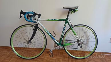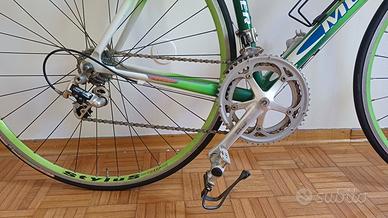 Splendida bici da corsa Moser Gara, conservata in ottimo stato. Leggera, scattante e pronta all'uso. Caratteristiche principali: Telaio: Alluminio Taglia: 54 cm (centro movimento / fine tubo sella) Gruppo completo Campagnolo Mirage 2x9 (18 velocità): - Comandi cambio - Cambio anteriore e posteriore - Freni Ruote: Vuelta 700x20c Accessori inclusi: - Nastro manubrio blu - Portaborraccia - Borsetta sottosella con camera d’aria di ricambio Usata poco, ben conservata e in ottimo stato generale. Disponibilità di prova su strada previo appuntamento a Ferrara, zona Piazzale dei Giochi. Spedizione non disponibile.