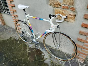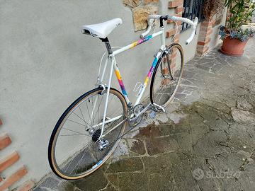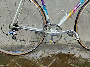 Vendo splendida Moser Stile, anno 1989, taglia 58, montata Shimano exage, cerchi ambrosio. leggero restauro conservativo, con parti nuove, ma originali d'epoca da fondi di magazzino, come le leve freno e il nastro che col tempo e l'utilizzo si erano cotti. sella Selle italia turbo anche essa nuova, copertoncini michelin classic nuovi, cinghietti e portaborraccia Zefal nuovi.