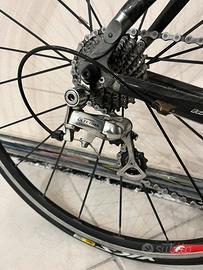 Telaio in alluminio con forcelle e carro posteriore in carbonio, gruppo Shnimano Ultegra, cerchi Fulcrum racing 3 e sella San Marco.