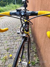 vendo per inutilizzo bici da corsa NSR Rocco, telaio in alluminio 6061, cambio Shimano 105, la bici ha i suoi anni ma è perfettamente funzionante, misura 26, forcella in carbonio, doppia borraccia.