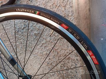 Bicicletta da corsa nuova Fuji, modello Sportif. taglia piccola XS ( 49 cm) adatta per ragazzo o donna. freni a pattino rim brake. gruppo shimano Sora 9 velocità. copertoni pavè strade bianche Challenge da 30 mm. telaio in alluminio, forcella in carbonio.