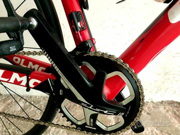Vendo bici da corsa telaio olmo in carbonio, come nuova, solo provata per pochi km, non ha un graffio, montata sram, monocorona, ruote su tubolari tufo senza camera d’aria + tubolare vittoria di scorta, come ricambio, misura telaio 55, attacco manubrio integrato deda in carbonio, reggisella carbonio, pedali look, il tutto è nuovo, posso venderla senza ruote al prezzo di 800€ sella non è quella che si vede in foto. Non spedisco, consegna a mano, così come in foto vendo a 1100€