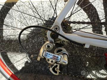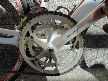 Bici da corsa Olmo equipe misura 54 x 54 cm, telaio in alluminio con forcella in carbonio, tenuta in maniera maniacale, guarnita con Campagnolo Veloce ad eccezione dei freni che sono Campagnolo Record titanio, cerchi Fulcrum racing 7.