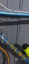 Bici vintage anni 70/80 con telaio in tubi Falck, sella Italia TI, manubrio 3T, cambio Huret, freni Universal, cerchi Fiamme, tubolari nuovi Continental Giro.