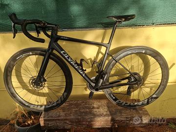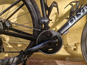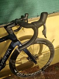 vendesi bicicletta da corsa Olympia Leader totalmente in carbonio con cambio sram force,ruote vittoria qurano da 46mm gomme pirelli con 200 km percorsi.