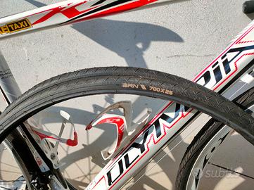 Causa mancanza di tempo metto in vendita questa Olympia Khers. Un po' datata con qualche segno di usura dovuto al tempo ma sempre "tagliandata",telaio in alluminio Idro formato,forcella in carbonio,gruppo centrale Shimano Tiagra 52/36 NUOVO! Copertoncini nuovi, più un'altro paio sempre nuovi (misure in foto),pedali sgancio rapido Look nuovi più altri pezzi di ricambio come ,corone,pignoni ecc ..prezzo leggermente trattabile. NON SPEDISCO!!!