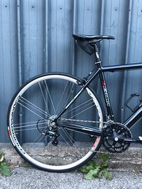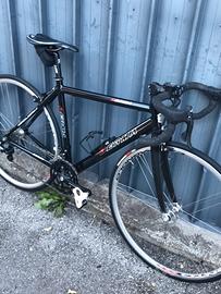 Bicicletta da corsa Berma in alluminio, forcella in carbonio, mis. Altezza 50 cm. centro fine, lunghezza 52 cm. in orrizzontale, taglia S, gruppo Campagnolo Mirage, guarnitura compact 50/34, pignoni 13/26, pedali Look, ruote Campagnolo Vento, kit manubrio e reggisella 3T THE