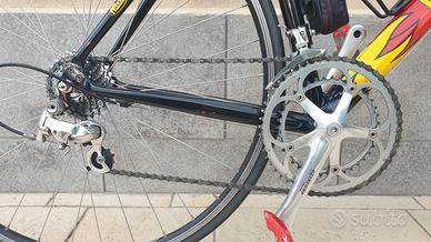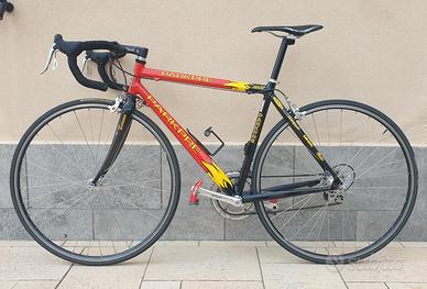 Bici con qualche anno ma usata pochissimo (non supera i 5.000 km totali). Ancora tutto in ottime condizioni. Opportuno sostituire pneumatici. Gruppo Campagnolo Daytona. Non ricordo la misura, la mia altezza è di 1,72 m.