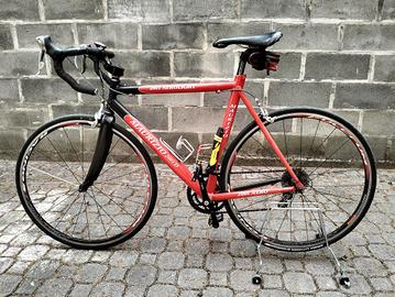 telaio 52 per me alto 1,74 e ok,in alluminio acquistata da ditta Chierici Parma con forcella in carbonio, cambio 9 velocità stimano Ultegra - tutto il gruppo montaggio e schimano ultegra guarnitura 50/34- cerchi falcon racing copertoncini 700 x 25 e aggiungo oltre la bici coppie leve comandi cambio shimano ultegra come per mia bici di ricambio - vendo causa inutilizzo ultimo giro 2 mesi fa ,ora usa bici elettrica - oggetto e' integro e bello da vedere prezzo che chiedo eu375