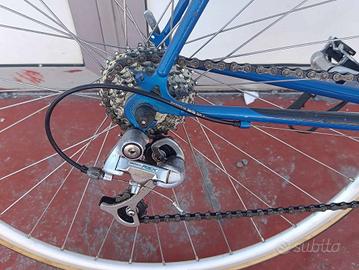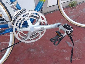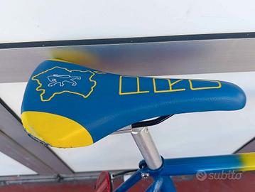 Splendida bicicletta da corsa Peugeot dedicata al campione Richard Virenque, caratterizzata dall'iconica livrea sfumata giallo e blu. Il telaio è in condizioni eccellenti, monta un gruppo Shimano con cambio al manubrio perfettamente funzionante e sella coordinata blu e gialla. La bici è pronta all'uso, ideale per collezionisti, amanti dello stile vintage o per chi cerca un mezzo affidabile e di carattere per le uscite domenicali. Un pezzo di storia del ciclismo francese conservato con cura, completo di nastro manubrio originale dell'epoca. Consegna gratuita in tutta la provincia di Imperia