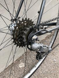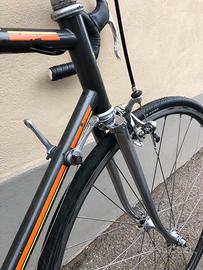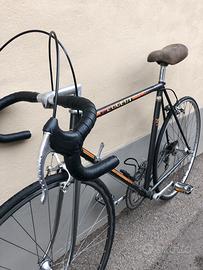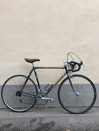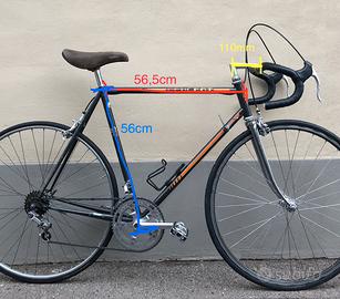 Bici Peugeot corsa anni 80 completamente restaurata. Telaio conservato originale. Misure: -sella/movimento centrale 56 cm -sella/piantone sterzo 56,5 cm -pedivella 170 mm -attacco manubrio 110mm -larghezza manubrio 380mm/410mm -diametro manubrio 25mm Sella Italia scamosciata brown Cambio Peugeot 6x2 Freni shimano 600 sgancio rapido Portaborraccia Pneumatici -Anteriore marca DURO 700x23c con camera d aria. -Posteriore tubeless (no camera d aria) TUFO S33 PRO 21 mm 700x21c -Cerchioni sgancio rapido Anteriore campagnolo Posteriore KunYu Come da foto. Non spedisco. Disponibile a Brescia. Ideale per eroica o simile.