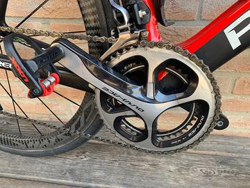 Vendo bici da corsa Pinarello F10 Dogma usata pochissimo e sempre ben tenuta per passaggio a TT. Taglia L Ruote Mavic Cosmic con profilo 40. Pattini dei freni nuovi. Pedali Look rosso/neri nuovi. Cambio Shimano Dura Ace 11v. Telaio originale.
