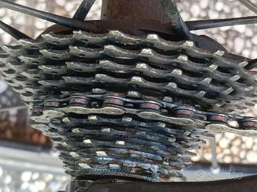 Telaio in carbonio, Parkpre k 999 taglia 50 cambio campagnolo potenza con 11 pignoni di velocità, corone 11 s- 50-34 versione compact, ruote Fulcrum racing zero con raggi rinforzati e mozzi con cuscinetti in acciaio ceramici, freni campagnolo record, manubrio e prolunga FSA compact, attacchi Look kèo Blade carbon. ( No spedizione, trattabile per chi la viene a prendere.)