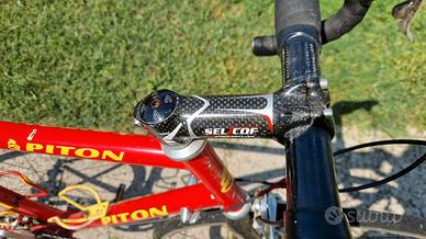 Telaio in acciaio leggero Columbus, forcella pipa e tubo sella in carbonio, montata DuraAce guarbitura compact anteriore e 9 velocità (fino al 27) pacco pignoni.