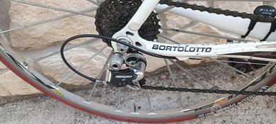 Bici da corsa con marchio Bortolotto. Telaio in carbonio di alta qualità (frame K3) e quindi molto leggera. Guarnitura campagnolo. La bici nonostante abbia qualche anno si trova in buone condizioni . La bici è adatta per chi è alto da 175 cm a 180 cm