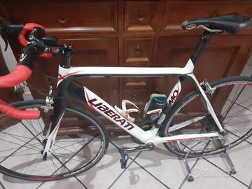Buonasera, vendo per conto di un amico Bici in Carbonio Liberati, Monta Cambio Campagnolo Atena 11 Velocità, meccanico, Guarnitura Campagnolo corus ultra torque, cerchi Campagnolo, pedali Look, Sella Italia, Curva in carbonio.
