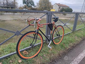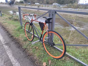 Bici personalizzata verniciata con effetto tigrato arancione-nero, single speed,