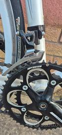 Perfetta per principianti o per triathlon: bici da corsa Rossin Omega in taglia M (ideale per ciclisti 170-180 cm), colore bianco argento con sfumature, pochi km percorsi e in ottime condizioni generali