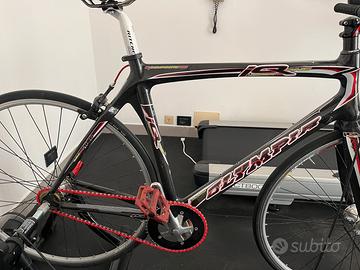 Vendesi bici da corsa ( ideale per altezza 170-180 cm) in carbonio Olympia collegata a rulli per indoor.La bicicletta è a velocita’ singola ma grazie a regolatore di velocità dei rulli, si posdono avere 4 velocità differenti.Bicicletta si trova a Rimini e non si effettua trasposto.Prezzo richiesto: 450€