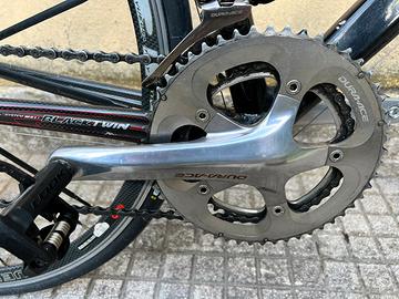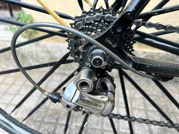Vendo Bici da Corsa SAB San Marino Bike, tutta in carbonio, con gruppo Shimano Dura Ace, con 9 velocità, rapporto 53/39 avanti e 12/23 dietro. Costruita su misura, equivale a una taglia 54/55 circa Compresa di guanti e scarpette 42.