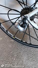 vendo bici da corsa in alluminio leggerissima SCOTT Tag. M ( 54 ) monta gruppo schimano dura ace rim 10v ruote ksiryrium sl bici perfetta ottima per seconda bici o per chi deve iniziare a pedalare.