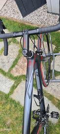 vendo bicicletta Scott completamente in carbonio, taglia 58, stupenda con questo abbinamento di colore nero opaco e inserti rossi, montata Ultegra usata veramente poco, pedali doppia funzione, qualsiasi visione e prova senza impegno