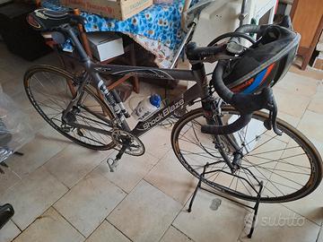 Vendo in Via Fiorentina - Sperone - Pistoia (PT) bicicletta da corsa marca Shock Blaze da riguardare da chi sa e può, ma funzionante in freni, manubrio, ruote e cambio; cambio Mirage Campagnolo, attacchi Shimano per scarpini, il caschetto è in regalo e ne potete fare quello che ne volete e compreso in regalo anche il cavalletto per bici da corsa visibile nelle foto; la grandezza della bici non la so e non so come misurarla e mi scuso per questo, mi dispiace; per questi motivi si prega di venire a visionare la bici in questione in vendita sia per conoscerci, e non per ultimo, vedere dal vivo l'oggetto in questione; trattazione e pagamento all'incontro e al luogo detto dove sono, non spedisco, la bici in questione HA IL TELAIO NUOVO.