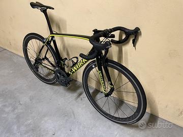 Vedo come da titolo bicicletta in carbonio specialized S-works sl5 in taglia 56. Ruote ad alto profilo in carbonio "Vittoria", 50mm la posteriore e 45mm l'anteriore. Gruppo cambio shimano ultegta con rapporti 36-52 anteriore e 11-28 al posteriore (11 velocità) Sella, reggisella, attacco manubrio e manubrio s-works. Movimento centrale ceramic speed, Pneumatici continental gran prix 5000 con valvole lunghe. Disponibile per ulteriori informazioni, foto, videochimate e ovviamente prova su strada.