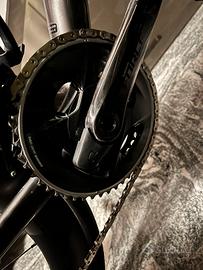 Ruote roval rapide CL; manubrio integrato specialized, gruppo elettronico sram force 12 velocita (48/35 avanti, 10/33 dietro); misuratore di potenza. Bici perfetta, ha solo il cerchio dietro graffiato a causa di passaggio su un tombino. Sella specialized. Copertoncino posteriore nuovo, anteriore 50%. Pasticche freni appena sostituite. La catena ha circa 2000 km.