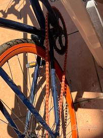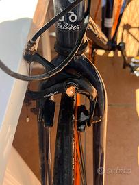 La bici ha un morbido manubrio da corsa con ruote sottili raggi in ottima condizione non dispone di marce pedali di ferro con catarifrangenti sellino regolabile, freni funzionanti alcuni componenti come bulloni possono avere un po’ di ruggine