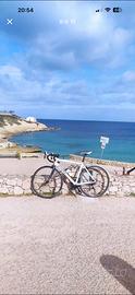 Vendo bici da corsa strada taglia (M) leggerissima con telaio in alluminio e forcella in carbonio. Cambio microshift a 8v e deragliatore Shimano con guarnitura tripla 53/39/30. Appena sostituite gomme, catena e pacco pignoni. La bicicletta è come in foto, usata poco e pari al nuovo. Vedo con due borracce.