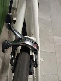 Vendo bici da corsa Telaio: Alluminio leggero con geometrie confortevoli ma reattive. Forcella: Carbonio (assorbe meglio le vibrazioni del terreno). Cambio: Mix di alta gamma Shimano Ultegra (deragliatore e comandi) e Shimano 105 (guarnitura), il perfetto equilibrio tra leggerezza e affidabilità. Sella: Selle San Marco (modello ergonomico). Stato: Bici tenuta con cura, pulita regolarmente e pronta all'uso. Taglia 51 Ritiro a zona Milano preferisco non spedire Prezzo molto Trattabile