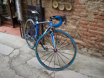 Bici da corsa Cinelli, modello Saetta telaio in carbonio, freni, cambio, guarnitura, sella, portaborraccia, sono tutti in carbonio, pesa 6,7 kg, telaio piccolo misura s, adatta a donne e ragazze o uomini non alti di statura. il prezzo di qualche anno fa era di cica 5.000 euro. la bici e come nuova ha percorso solo 300/400 km.