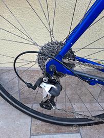 Causa passaggio ad altro modello vendo bicicletta da corsa Tacconi con telaio in alluminio e forcella in carbonio, 8 cambi al posteriore e 3 corone all'anteriore, ideale per chi si trova in difficoltà coi rapporti duri delle biciclette da corsa tradizionali, perfetta come muletto, bici da turismo, giri in ciclabile o bici da città veloce.