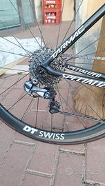 Vendo Bici da corsa Taglia 54 in Carbonio montata come segue: Gruppo ultegra R8000 con misuratore di potenza su pedivella Sx, Pedivelle 172.5mm, corone 50/34, cassetta 11-30, Cambio Ultegra Di2 Elettronico Cerchi in carbonio profilo 30mm piste frenanti in ottimo stato. Manubrio in carbonio integrato 400x90 No Perditempo, posso spedire con spese a carico dell'acquirente. i loghi presenti sul Telaio sono adesivi, il telaio è no brand!