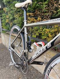 Modello Scott speedster S20 anno 2010/2011 Acquistata Da Morobike di Bolgare gruppo Shimano 105 .Freno promax Copertoni Continental pro max Km fatti circa 3000 Usata poco solo per uscite domenicali Sella della selle Italia da sostituire copertura manubrio Componenti tutte originali manutenzioni : catena e freni Numero telaio GN012942 MISURA X ALTEZZA 1.60 1.65
