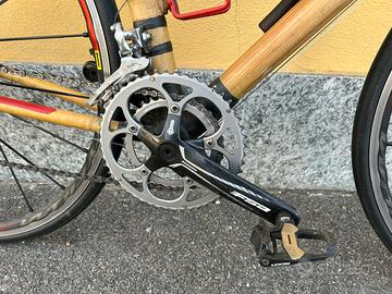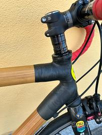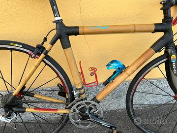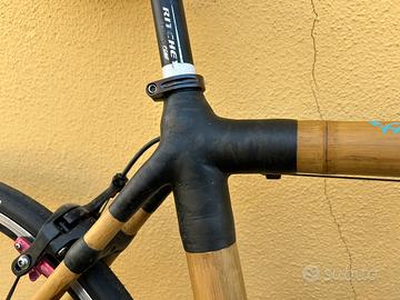 Telaio in bambu e congiunzioni in carbonio, si tratta di un esemplare unico realizzato da un artigiano.