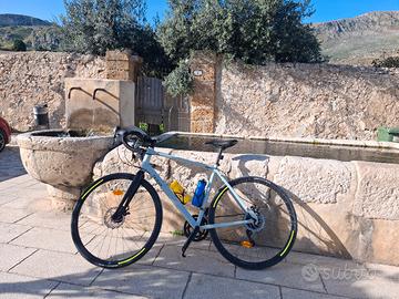 Bici da corsa , taglia L , telaio alluminio, forcella in carbonio. Freni a disco meccanici. 8 velocita' x 2 . Pedali autobloccanti
