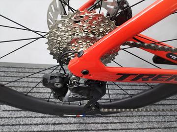 Forcella: Madone KVF full carbon, cannotto sterzo conico in carbonio, passaggio cavi invisibile, disco flat mount, forcellini in carbonio, perno passante 12x100mm