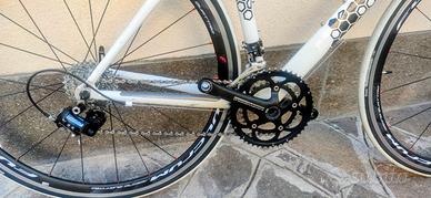 Bici da corsa taglia s ( fino a 165 cm) telaio alluminio con reggisella, forcella e pipa manubrio in carbonio. Qualche segno di usura, perfettamente funzionante. Cambio campagnolo. Ruote Fulcrum 4. Vendo a 350€