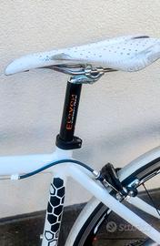Vendo bici taglia S (fino 165 cm) in alluminio con forcella, pipa manubrio e reggisella in carbonio. Buono stato con qualche segno di usura ma perfettamente funzionante. Cambio campagnolo, cerchi fulcrum 4. €350