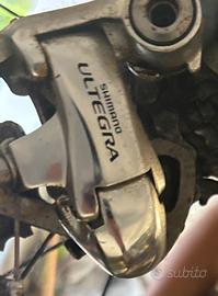 cambio shimano ultegra 10 velocità guarnitura 52-36!tenuta in maniera manicale completa di sensore pedalata e computerino tutto funzionante! il telaio è integro senza crepe ne saldature